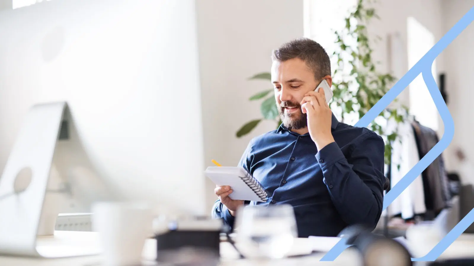Man belt vanuit kantoor